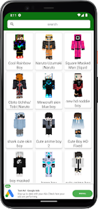 Boys Skins for Minecraft PE är en kostnadsfri app för Android som erbjuder ett stort utbud av HD-skinn specifikt för pojkar. Med tusentals alternativ kan användare enkelt byta ut sina Minecraft-skin varje dag. Appen är användarvänlig, där installationen av nya skinn görs med ett enda klick. Dessutom kan skinn förhandsgranskas i 3D, vilket ger användare en bättre uppfattning om hur de kommer att se ut i spelet.